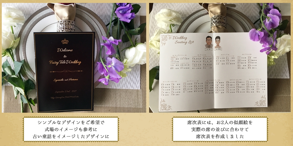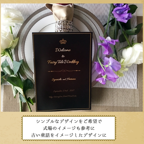 「シンプルなデザイン」、というご要望と式場のイメージに合わせて、古い童話をイメージしてデザインがスタートしました。